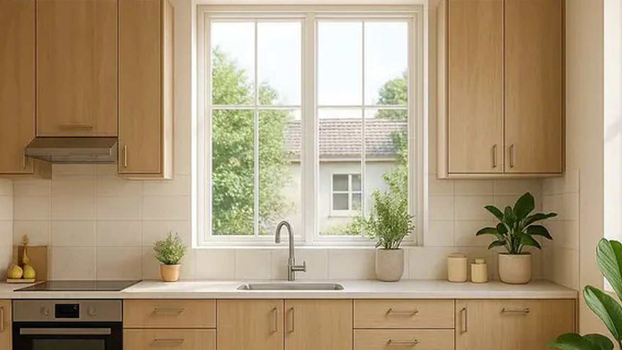 Penggunaan tirai tipis atau pemilihan warna cat yang cerah dapat memperkuat efek cahaya alami. Selain itu, menempatkan tanaman hijau di dekat jendela memberi kesan segar dan menyatu dengan alam. Dengan begitu, penghuninya dapat merasakan suasana yang nyaman dan menenangkan saat berada di dapur.