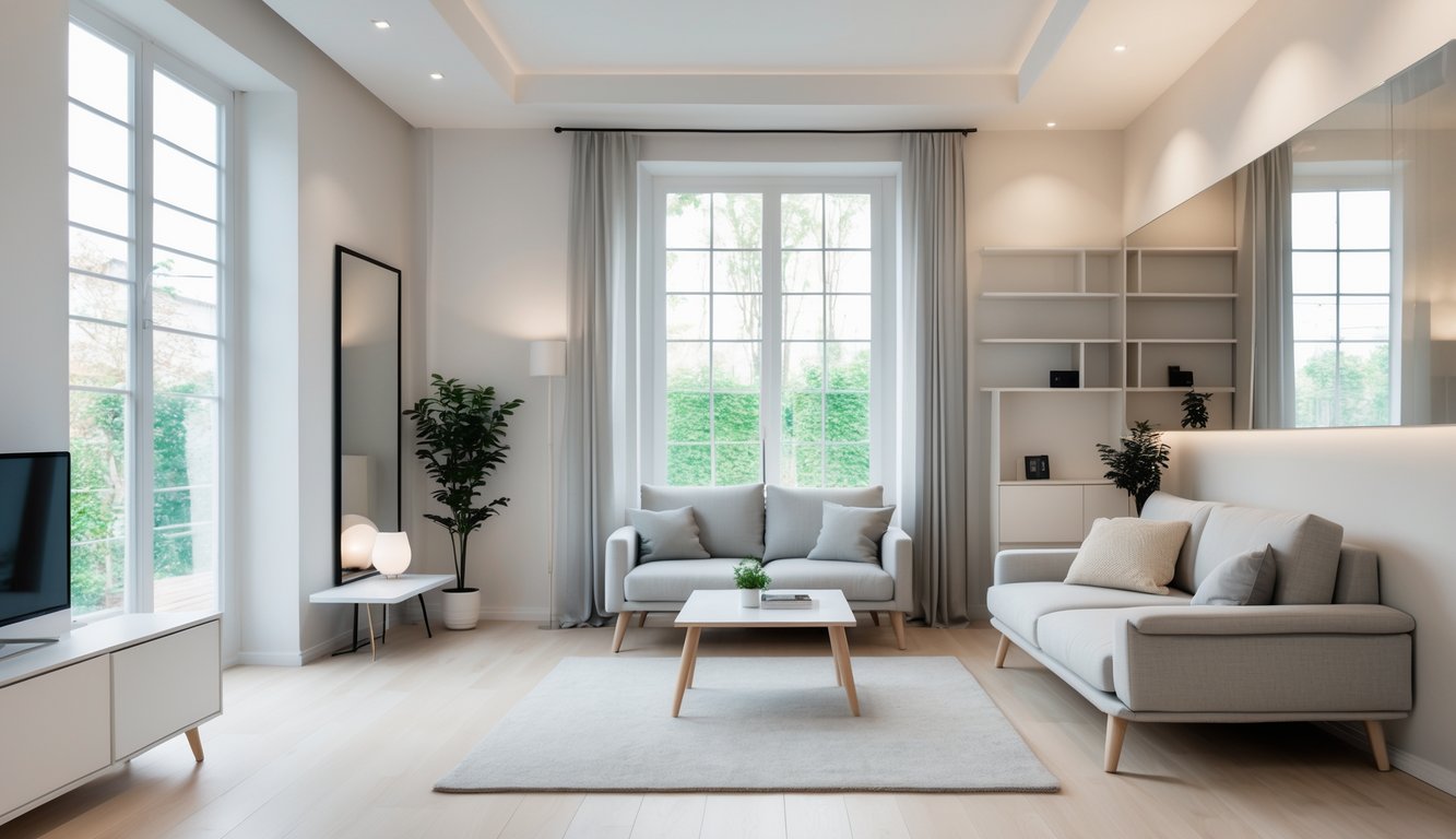 Cermin dan kaca dapat memberikan ilusi ruang yang lebih besar dalam ruang tamu kecil. Dengan pemilihan yang tepat, elemen-elemen ini tidak hanya berfungsi sebagai dekorasi, tetapi juga meningkatkan pencahayaan dan kedalaman visual ruangan.